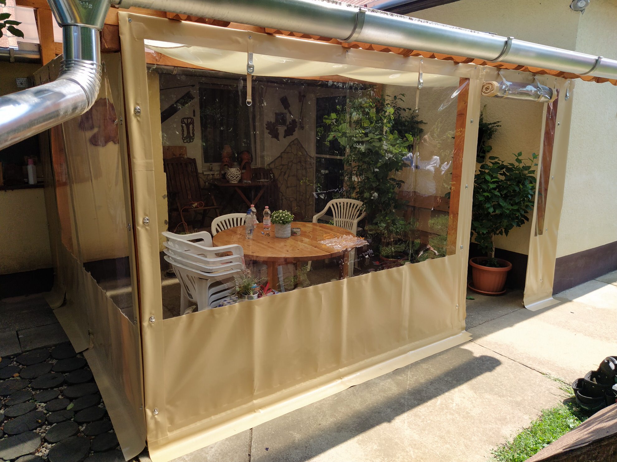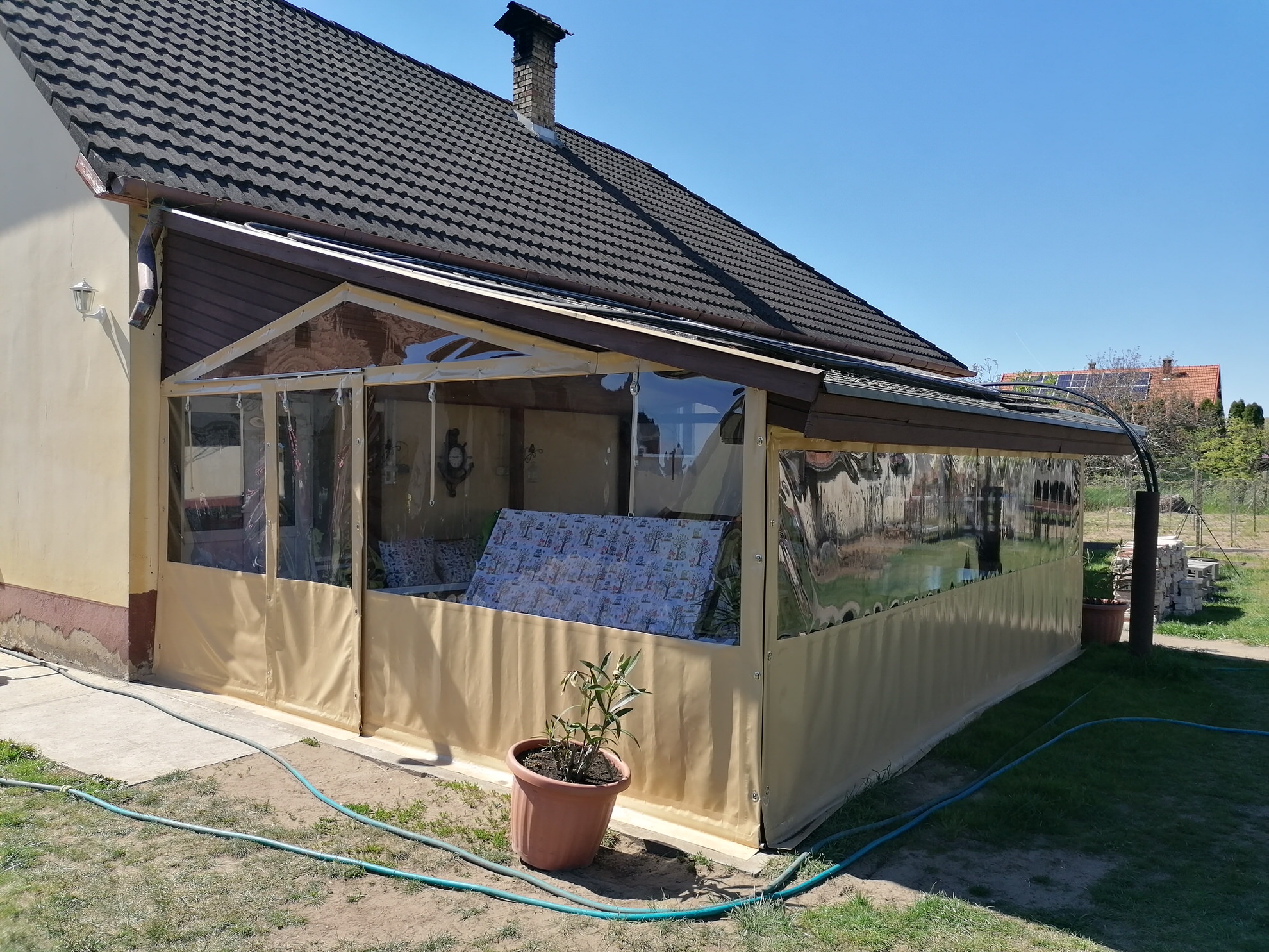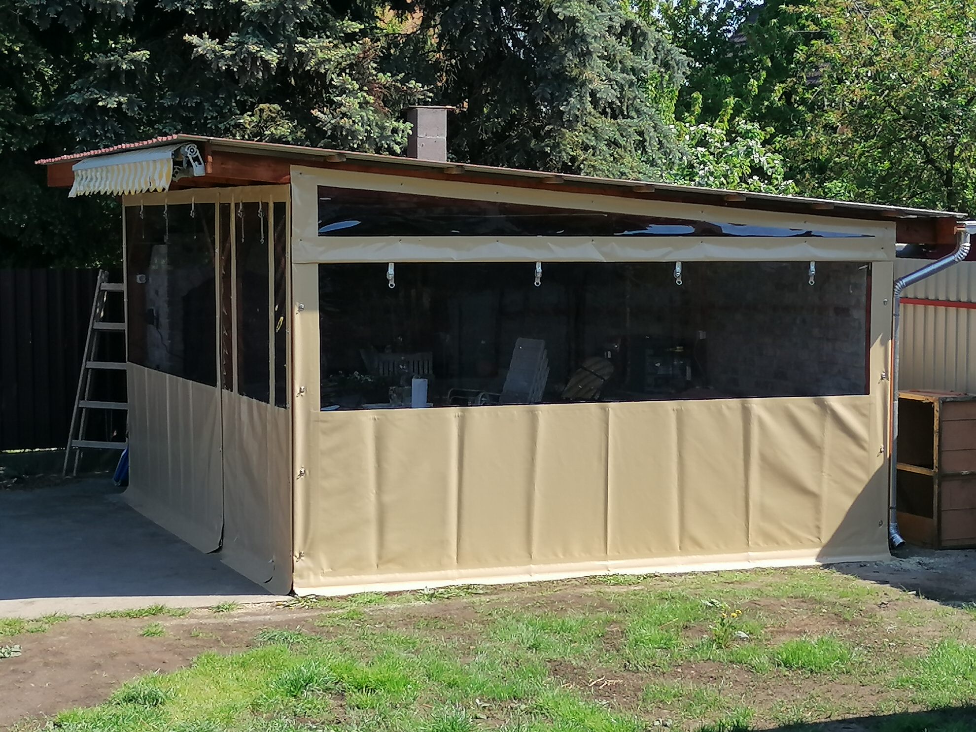 Ponyváink gyártása előtt alapos felmérést készítünk és minden részletet átbeszélünk, hogy a megrendelőt ne érje meglepetés. Az esetlegesen felmerülő kérdésekben mindig egyeztetünk az ügyféllel, ezzel is éreztetve, hogy nekünk ő az első! Gyártás során a folyamatok 90%-át önjáró géppel végezzük, így egységes és esztétikus hegesztési csíkokat tudunk készíteni. Termékeinket olyan ügyfeleknek szánjuk, akik szeretnék teraszukat/filagóriájukat megvédeni, egy esztétikus helyiséget kialakítani vagy árnyékos helyet létrehozni az időjárás viszontagságai ellen. Ha Önnek tetszik a munkánk, vagy csak lenne kérdése ebben a témában keressen minket bizalommal!